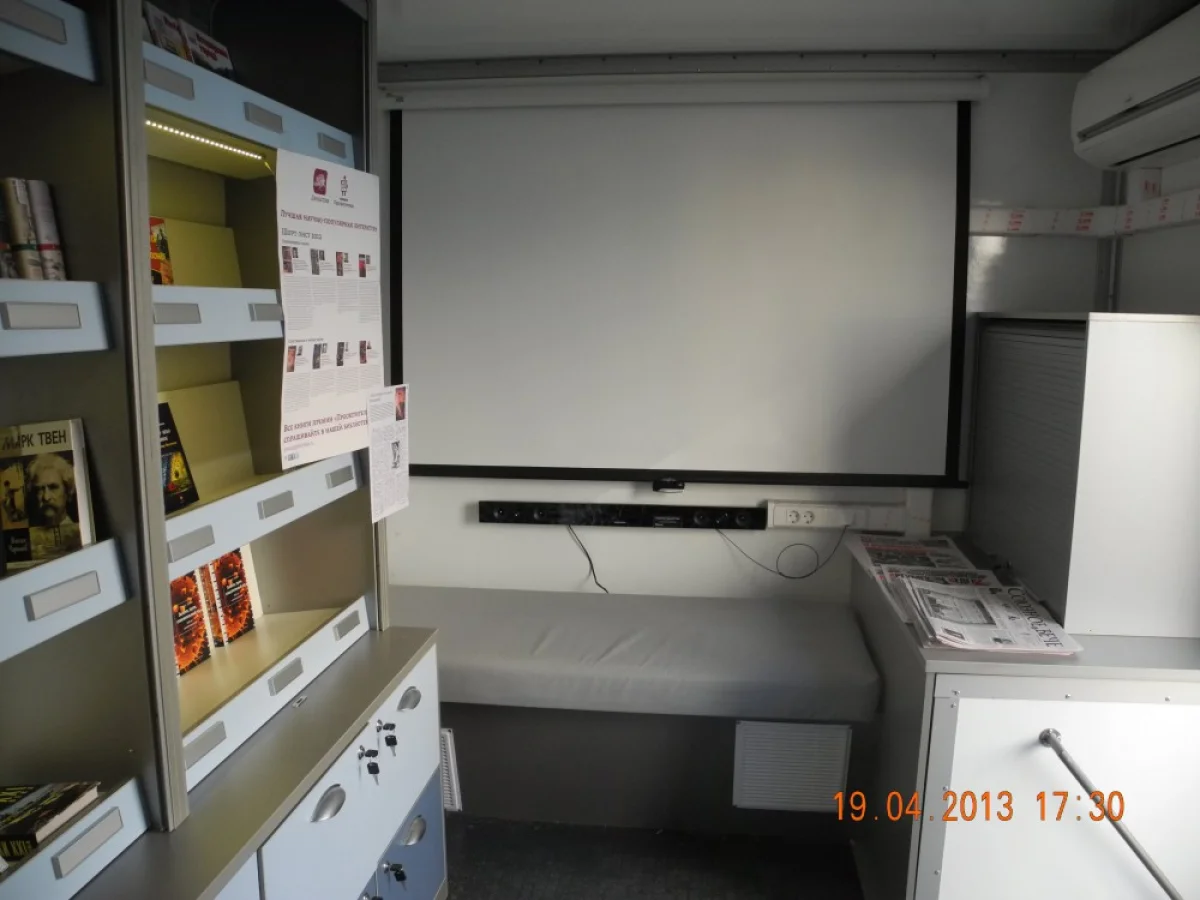 С конца 2010 года подобные библиомобили колесят по Московской, Брянской и многим другим областям России. Теперь и жителям самых отдаленных уголков нашего региона будут доступны литература и Интернет.
