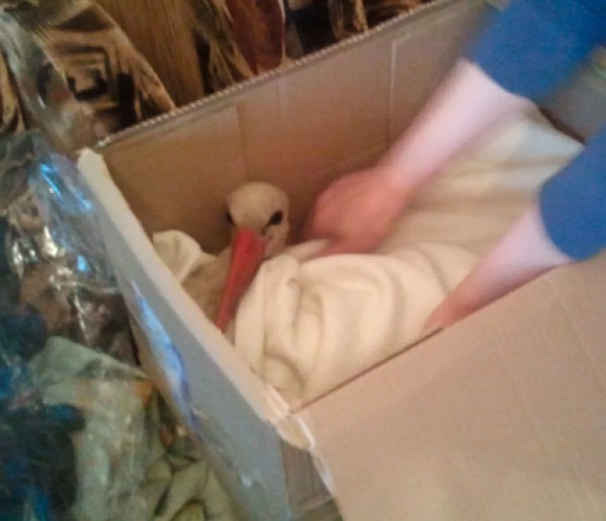 В воскресенье, 28 апреля, около двух часов дня житель поселка Резвань Сергей, как обычно, отправился на прогулку со своими собаками в расположенный неподалеку лес. И вскоре увидел лежащего на земле аиста с перебитым крылом.