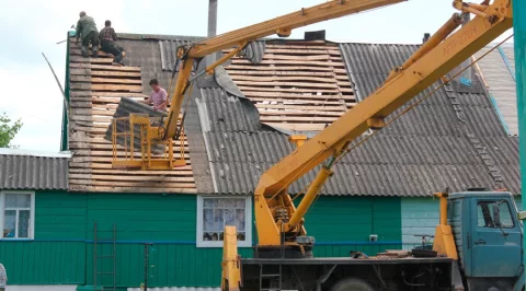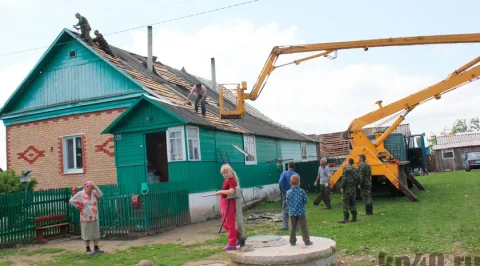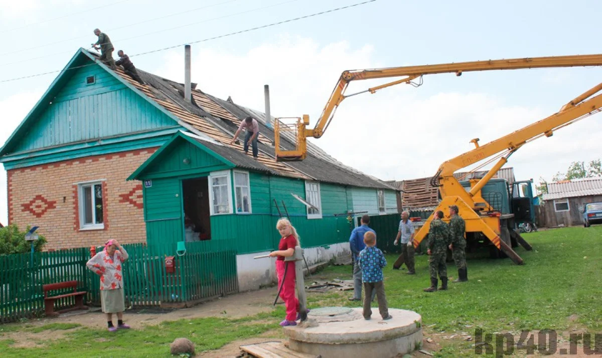 По всей деревне кипит работа. МЧС, сводная ремонтная бригада из Кондрово, наводит порядок. Уже успели распилить и вывезти поваленные ветром вековые тополя. Теперь о деревьях напоминают только пни. В домах начали крыть крыши. Пока – рубероидом, чтобы защитить жителей деревни от майских дождей. Потом деревенским жителям обещали выплатить компенсацию, но ее размер пока не называют.