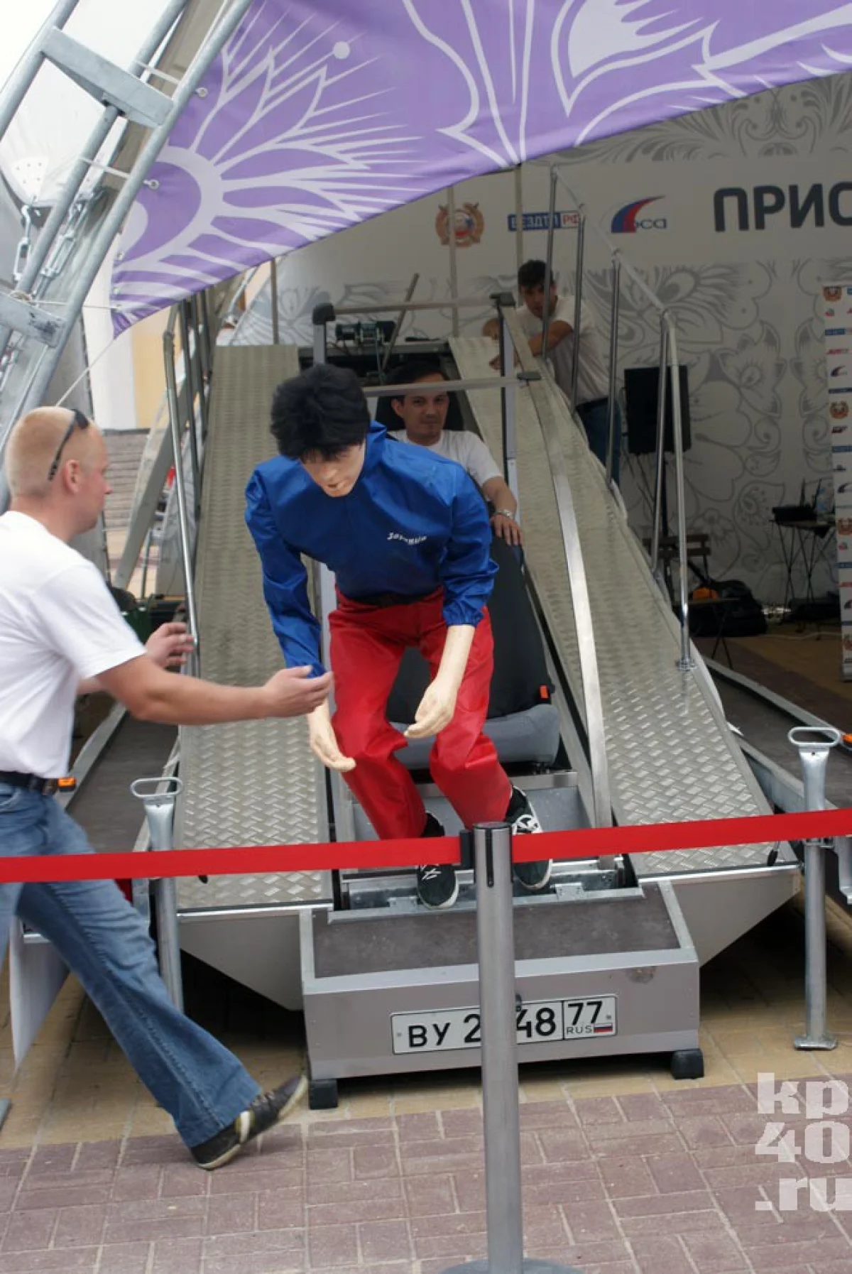 Конструкция тренажера проста – рельсы на наклонной железной плоскости, на них стоит платформа с двумя креслами. Желающих испытать острые ощущения пристегивают, поднимают и отпускают. Платформа летит по горке под собственным весом и резко останавливается внизу. Так имитируется лобовое столкновение. Скорость относительно небольшая, около 30 километров в час. Но этого достаточно, чтобы выходящие с тренажера калужане хором обещали пристегиваться всегда и везде. И детей пристегивать обязательно.