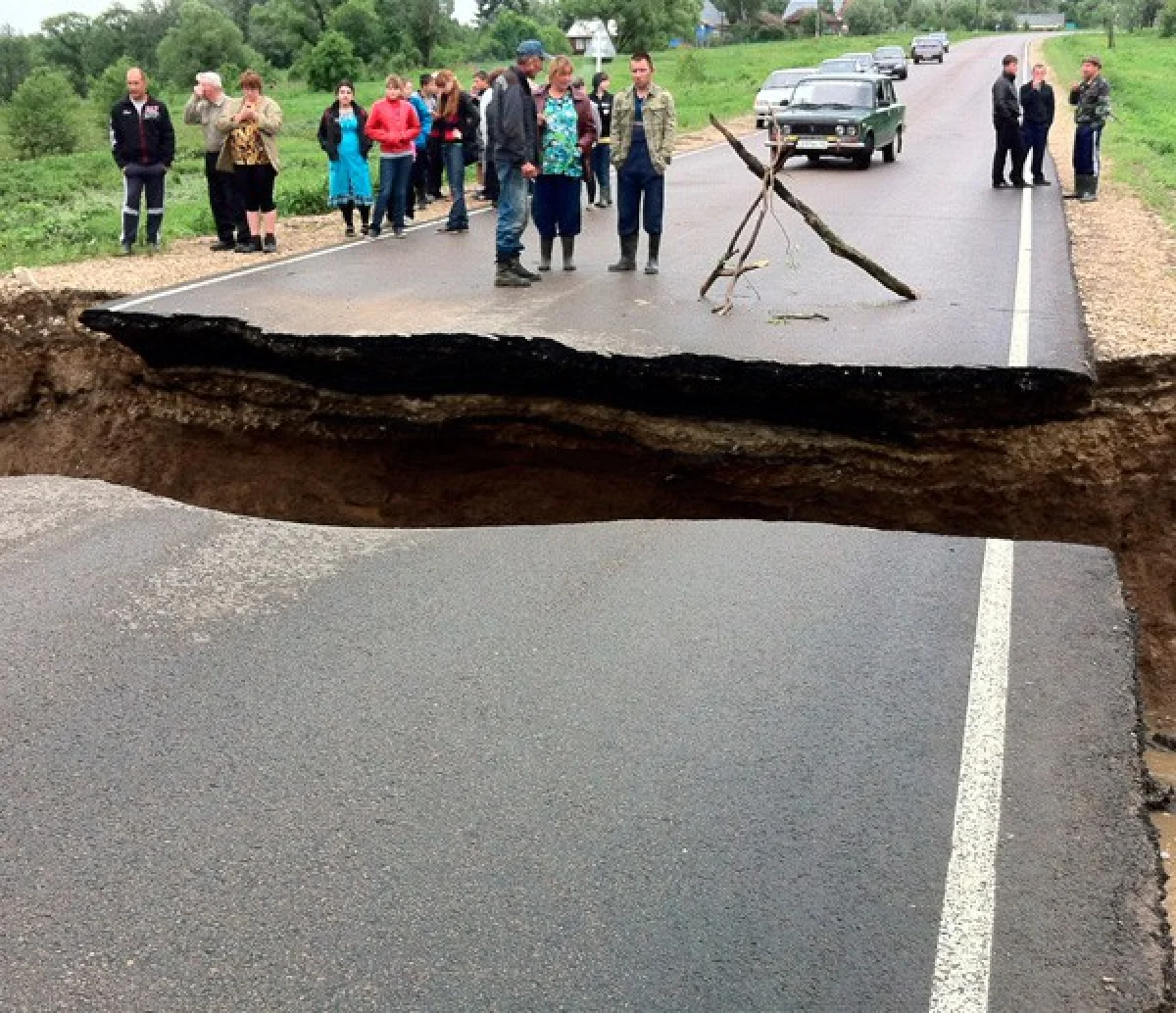 Сейчас в Тарусу из-за обрушения дороги в двух местах можно попасть только в объезд - через Детчино и Жуков - с крюком примерно в 70 километров.