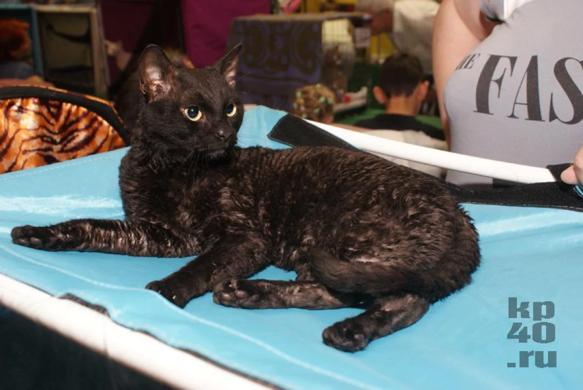 Немало привезли и британцев, и традиционных для Калуги скотишей. Это так же одна из самых популярных пород сегодня. А вот уральский рекс оказался на вставке в единственном экземпляре. По словам заводчицы, порода очень молодая, поэтому во всем мире всего около 200 ее представителей. Порода появилась в Екатеринбурге естественным путем, у таких кошек слегка вьющаяся шерсть, которая почти не линяет.