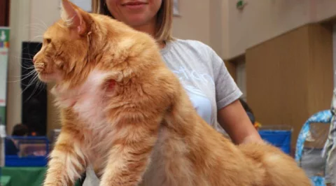 Одной из самых многочисленных пород на выставке оказались мейн-куны. Эти крупные кошки, которые могут достигать 12 килограмм, сейчас на пике моды. Правда, приехавшее на выставку самые тяжелые домашние кошки весили «всего» около 9 килограмм.