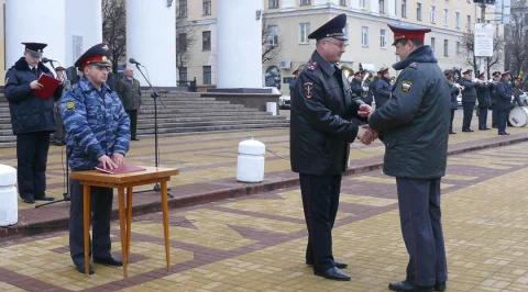 После этого под звуки духового оркестра полицейские прошли по площади маршем. Завершился строевой смотр на улице Суворова возложением цветов к памятнику сотрудникам органов внутренних дел, погибшим при исполнении служебного долга.