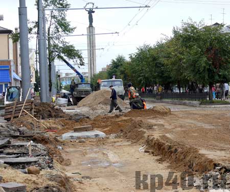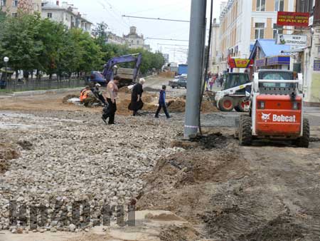 В среду, 27 августа, истек один утвержденных ранее сроков сдачи ул. Кирова и частичного открытия ее для автомобильного движения. И в этот день на месте работ побывала комиссия во главе с начальником управления городского хозяйства Вячеславом ДМИТРИЕВЫМ. Чиновники убедились, что к открытию движения она не готова: одно направление проезжей части почти заасфальтировали, а на другом работы в самом разгаре.