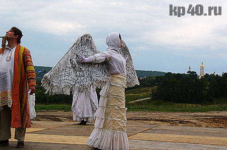 В пятницу эту постановку увидели жители поселения Спасово, что начало расти неподалеку от Клыковского монастыря в Козельском районе. Здесь, в живописном месте, у обители и речки Серены, вблизи строящегося поселка, в общем, в весьма подходящих условиях для спектакля, была сооружена сцена и разыгралась настоящая народная драма.