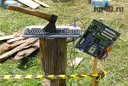 Однако есть особые сисадминские конкурсы. Множество зрителей собирались, чтобы посмотреть на метание мышей и клавиатур, прокладку сети в полевых условиях, сборку клавиатуры вслепую. Даже ливень не помешал празднику, и закончился слет лишь в воскресенье.