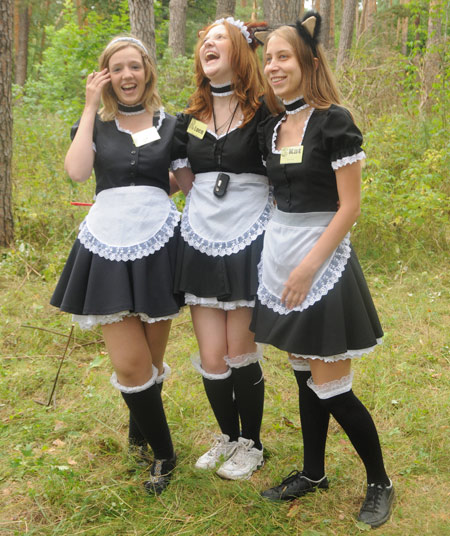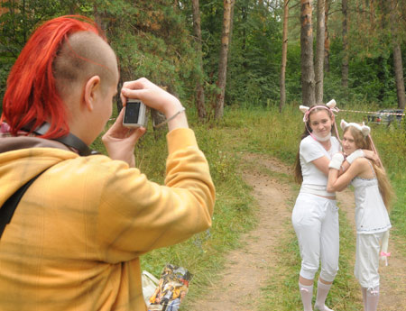 Во-первых, затянули с началом: около часа народ без толку шатался по полянке. Потом включили музыку и вроде стало веселее. Однако спустя два часа колонки сломались, еще столько же времени их пытались починить. Пришлось развлекать себя разглядыванием костюмов участников тусовки. Преобладали пушистые «ушки» на голове, купленные здесь же, на ярмарке аниме-товаров, наряды а’ля «девочки в школьной форме». Впрочем, большинство образов имело весьма отдаленное отношение к японской анимации.