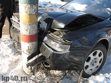 На перекрестке улиц Мичурина и Степана Разина «Ауди» встретилась со столбом.