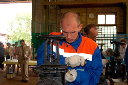 В областном конкурсе профмастерства приняло участие 20 специалистов из различных муниципальных образований области. Все они - работники предприятий ЖКХ региона, победители и призеры районных конкурсов профмастерства. Мероприятие проходило в два этапа: теоретическая часть и основная практическая часть, в которой участники конкурса должны были продемонстрировать умению проводить ревизию задвижки и устанавливать хомут.