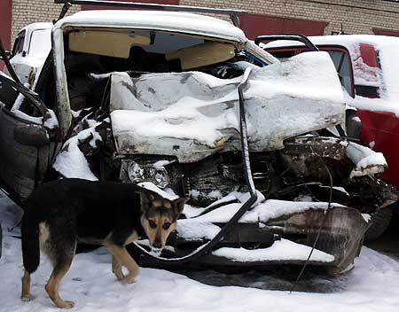 Отечественный автомобиль превратился в груду металлолома.