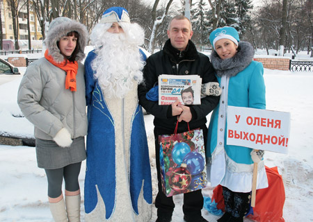 Газета «Комсомольская правда» подарила подарки всем автолюбителям, кто согласился подвезти Деда Мороза.