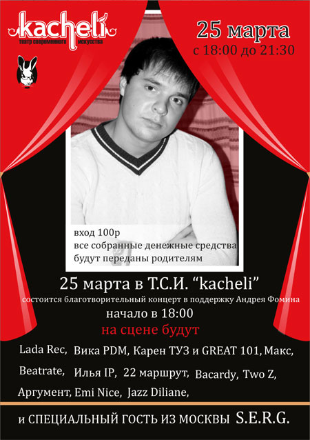 Стоимость входного билета – 100 рублей. - Также все желающие могут сдать кровь для Андрея Фомина на станции переливания по адресу: