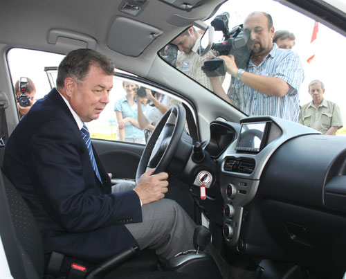 После весьма обстоятельных объяснений специалистов гости и журналисты получили возможность совершить тест-драйв. Первым за руль сел губернатор Анатолий Артамонов. В отличие от «Лады калины» i-MiEV завелся с первого раза. Причем, бесшумно. Также бесшумно, но уверенно тронулся с места. Потом, вылезая из-за руля, губернатор поднял руку, сжатую в кулак с поднятым вверх большим пальцем и сказал Юкио Мацумото: