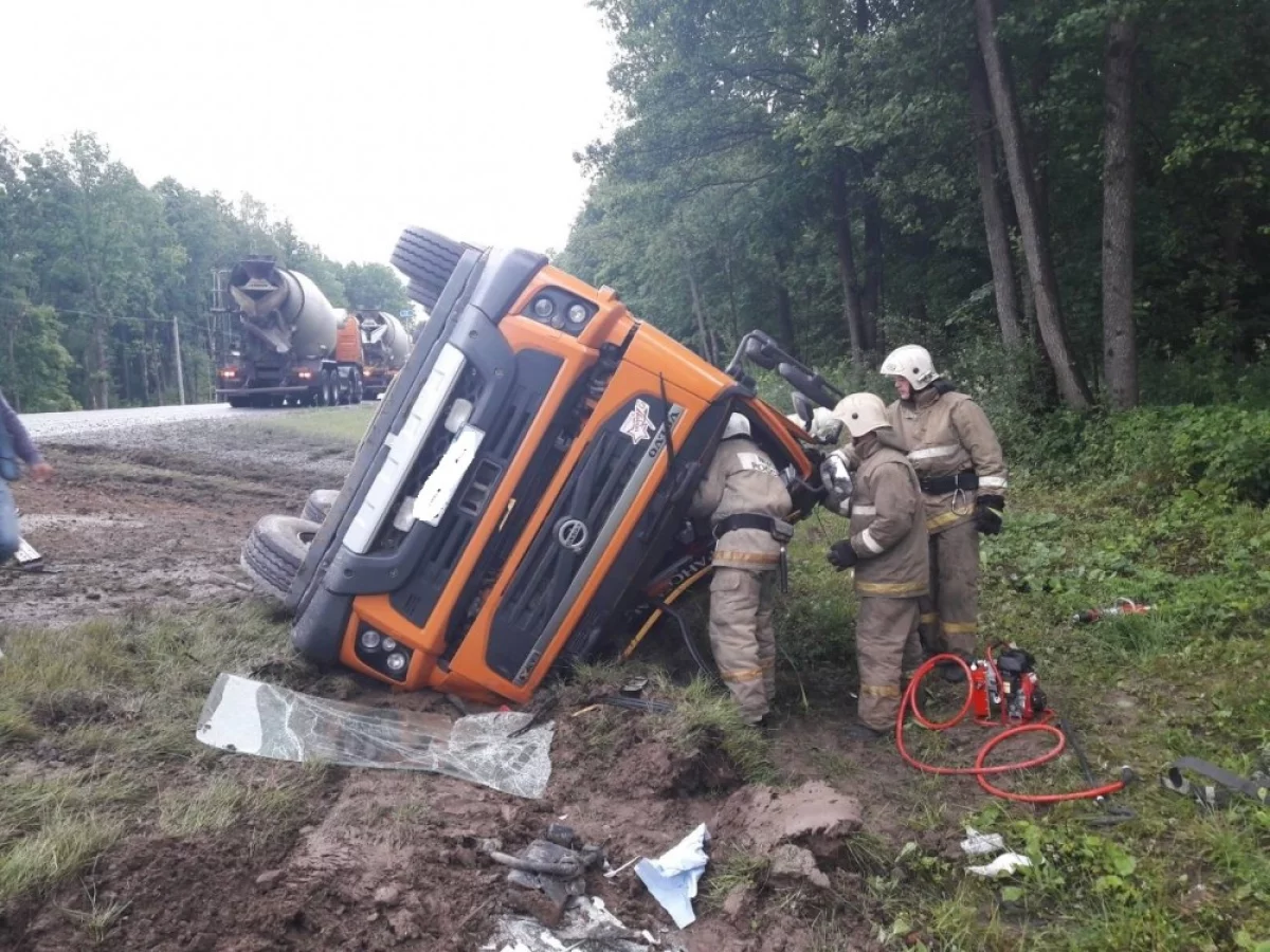 Цементовоз вылетел в кювет и перевернулся под Калугой