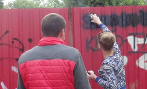 Полицейские с волонтерами закрасили рекламу наркотиков