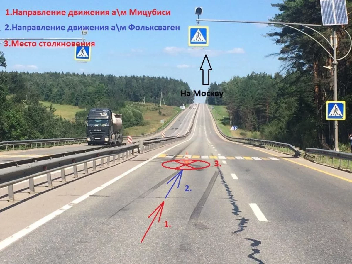 Во вторник, 31 июля, в 11:10 на 123 км дороги М3 «Украина» произошла авария: столкнулись автомобили «Мицубиси» и «Фольксваген».