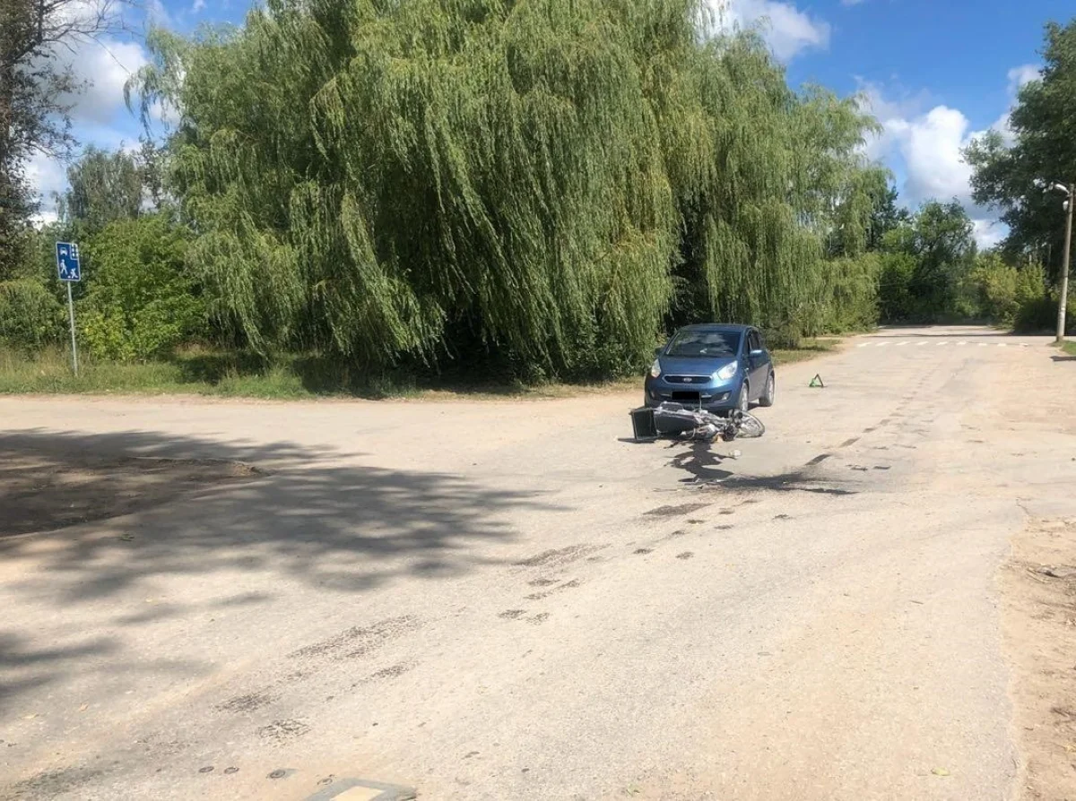 Утром 6 августа в поселке Товарково на улице Центральной автомобиль «Киа Венга», направляясь в сторону трассы «Калуга-Медынь-Товарково», сбил мопед.