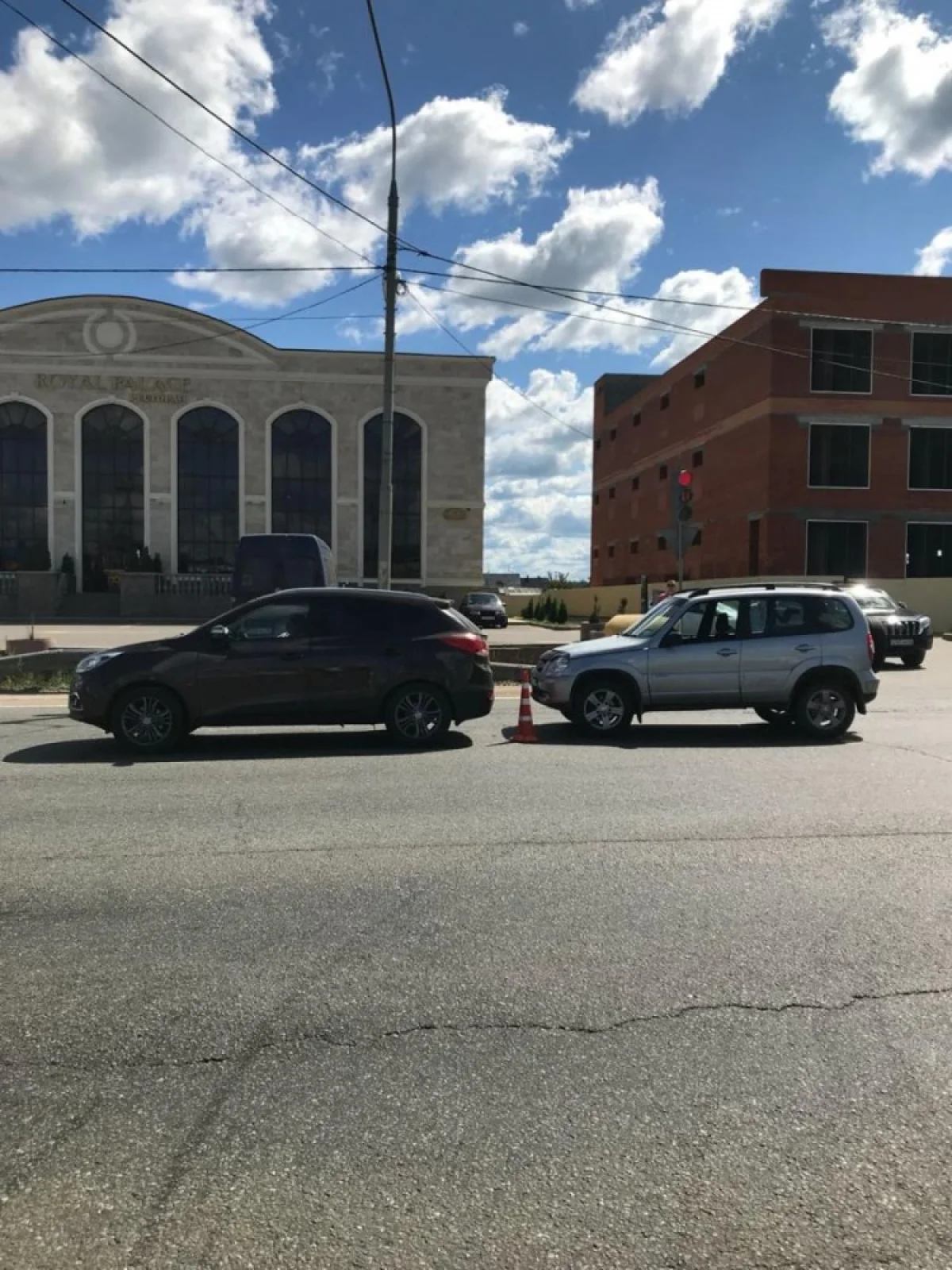 Автомобиль «Шевроле-Нива» на полном ходу въехал во впереди идущий «Хендай IX 35». Водитель «Нивы» не рассчитал дистанцию, говорят в полиции.