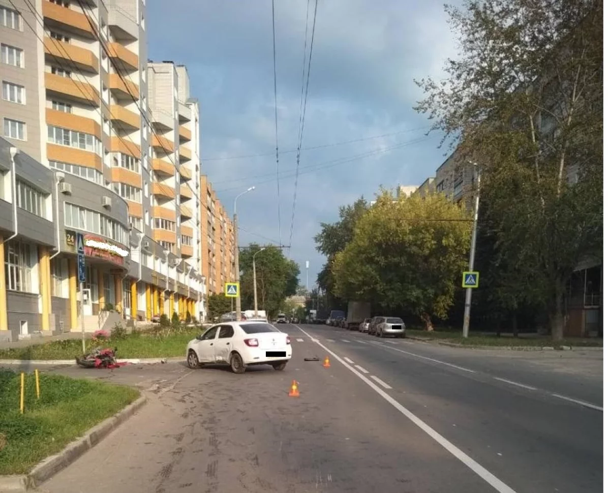 Мотоциклист на «Хонде» столкнулся с «Рено логан» на улице Билибина в Калуге в среду, 15 августа, сообщил отдел пропаганды областного УГИБДД.