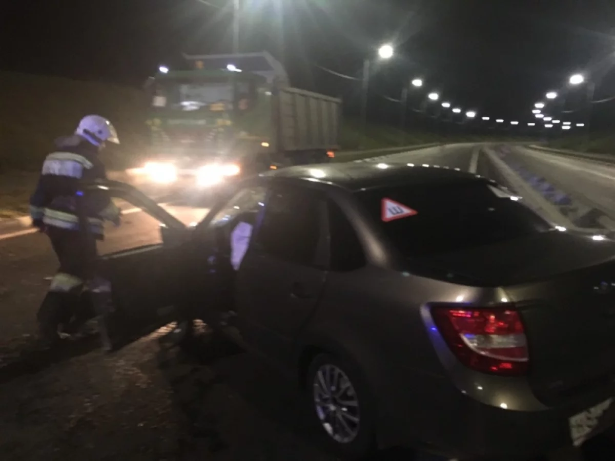 Грузовик МАЗ и легковушка «Лада Гранта» столкнулись вечером в субботу, 6 октября, на Пучковском мосту в Калуге.