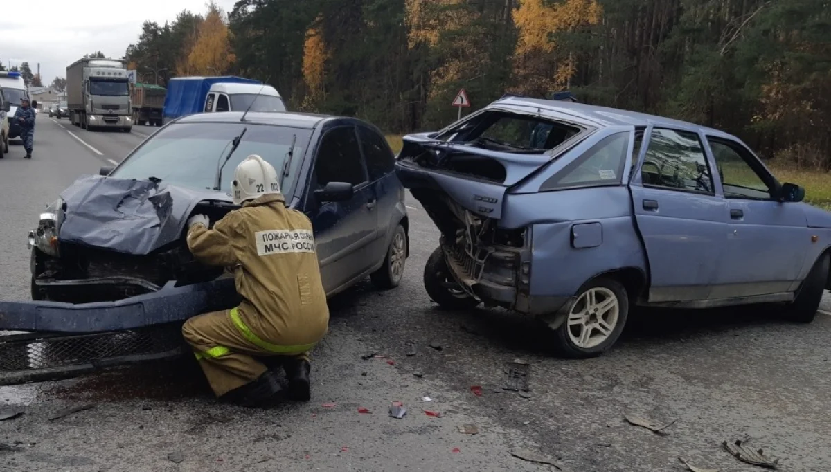 На 18-м километре автодороги «Калуга-Медынь» произошло столкновение двух автомобилей: по предварительным данным, «Форд Фиеста» протаранил ВАЗ-2112.