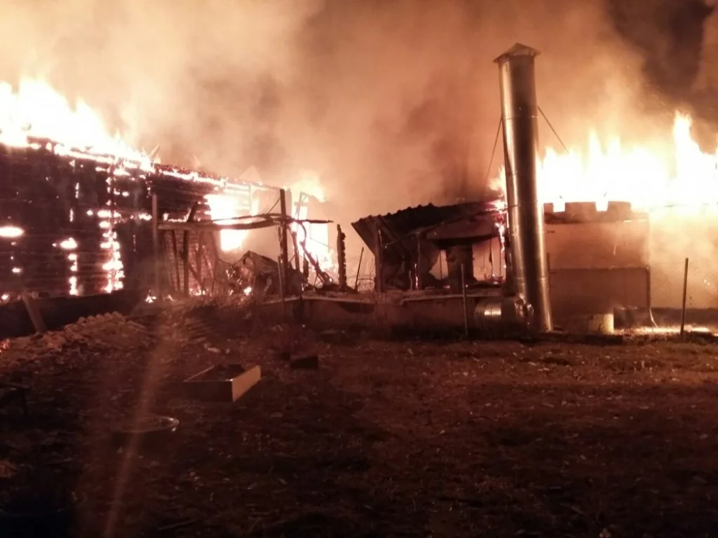 О пожаре спасателям сообщили в 21:30. На место ЧП выехали 9 пожарных на трех спецмашинах. Судя по оперативным фото, дом полыхал вовсю и выгорел практически полностью.