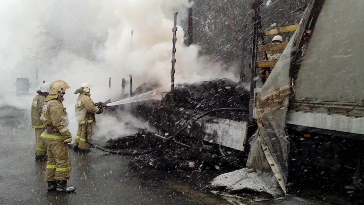 В субботу, 19 января, загорелся прицеп большегруза «Ман» на 122 км трассы М3 «Украина».