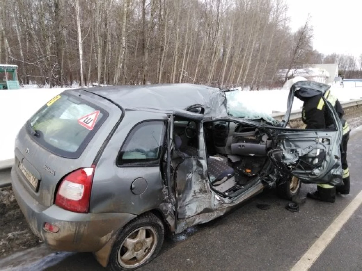 ДТП произошло около 4 часов вечера. Судя по оперативным фото, людей из «Лады» пришлось вырезать, а сама машина превратилась в груду железа.