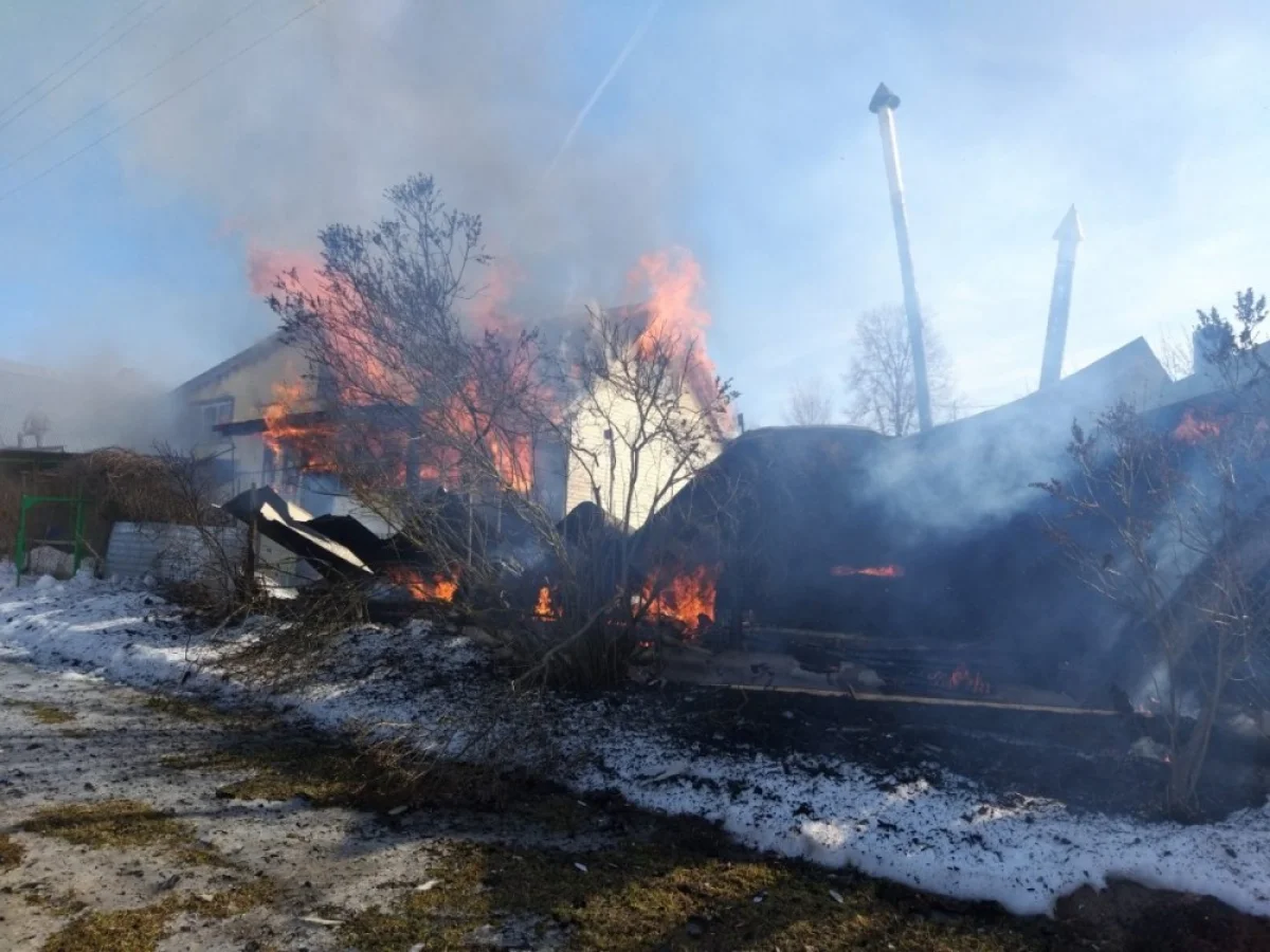 Загорелась баня в деревне Лысая гора-1. Через некоторое время огонь охватил все строения на участке. Сгорели баня, сарай и дачный дом.