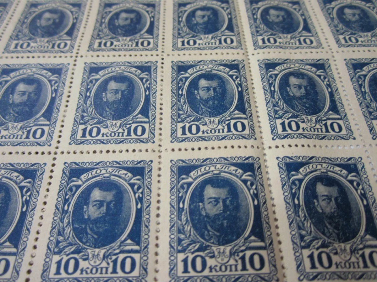 Один из важных экспонатов - марочный лист 1915 года Российской Империи с Николаем II номиналом 10 копеек. Он уникален тем, что у марки был ограниченный тираж, и в коллекциях они чаще поштучно, а в музей передан целый лист.