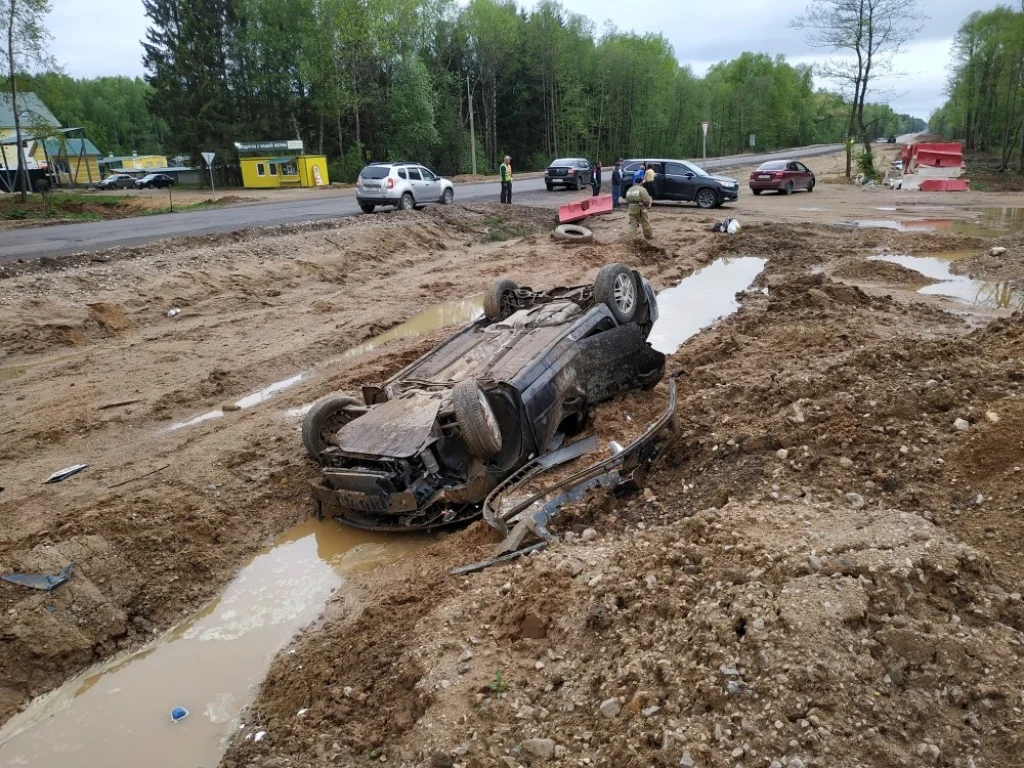 В субботу, 11 мая, автомобиль «Форд» вылетел с дороги, опрокинулся в кювет и попал в разлившуюся там после дождя лужу.