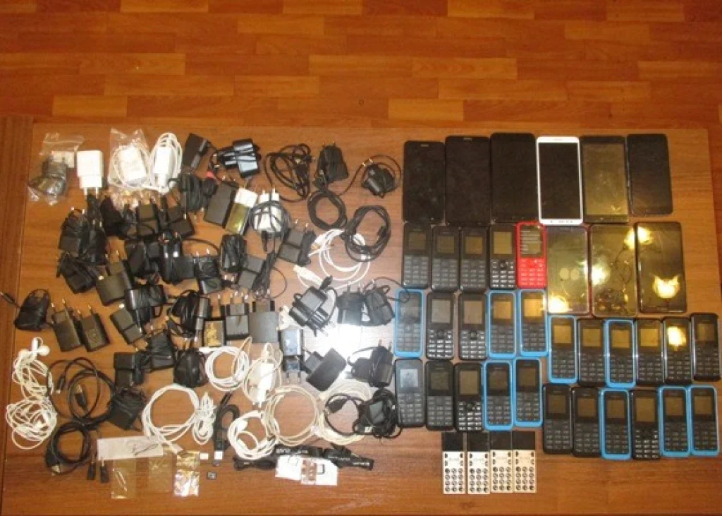 В ней оказалось 40 мобильных телефонов, 2 сим – карты, 4 подвески для телефона и 47 зарядных устройства.