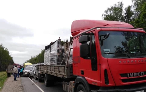 В 13:00 столкнулись четыре автомобиля: «Фольксваген», «Ивеко», «Тойота» и «Киа». Судя по фотографиям с места, легковушки «паровозиком» врезались в затормозивший грузовик.