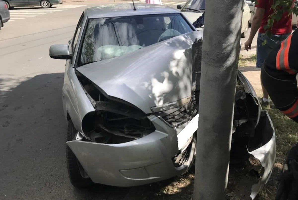 Автомобиль «Лада Приора» врезался в столб на перекрестке улиц Степана Разина и Мичурина.