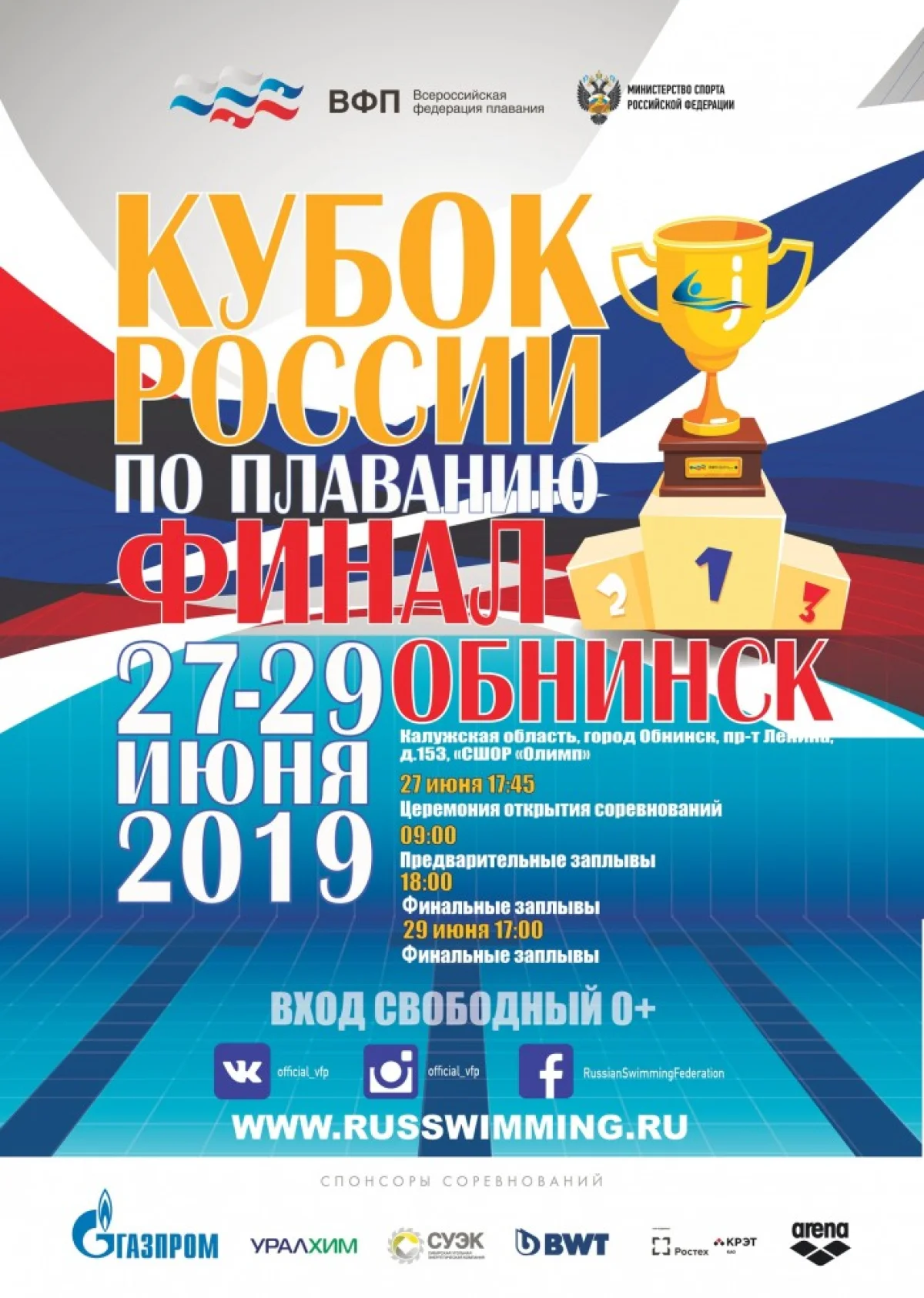 27 и 29 июня в обнинском спорткомплексе «Олимп» пройдут финальные соревнования Кубка России по плаванию, сообщила пресс-служба Администрации наукограда.