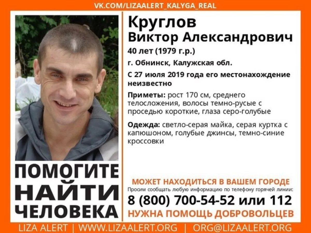 В Калужской области ищут 40-летнего Виктора Круглова из Обнинска. Последний раз мужчину видели 27 июля, с тех пор его местонахождение неизвестно, сообщает добровольный поисковый отряд « Лиза Алерт».