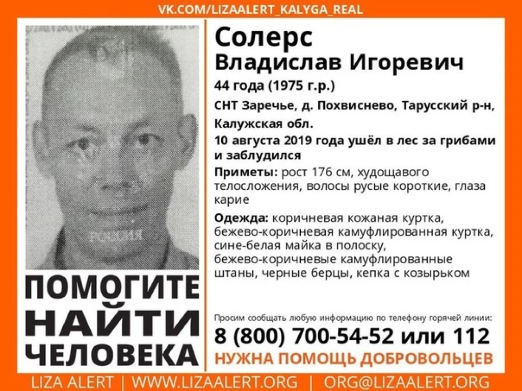 Владислав Солерс ушел за грибами еще 10 августа и до сих пор не вернулся. Сбор волонтеров - сегодня в 17 часов в деревне Похвиснево. Координаторы поиска предупреждают, что одеваться надо так, чтобы не промокнуть в лесу.