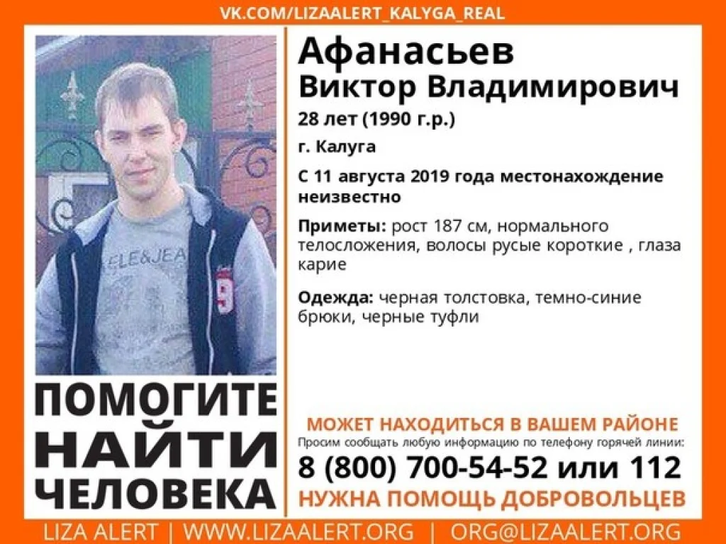 В Калуге разыскивают 28-летнего Виктора Афанасьева. Мужчина пропал 11 августа, с тех пор информации о его местонахождении нет.