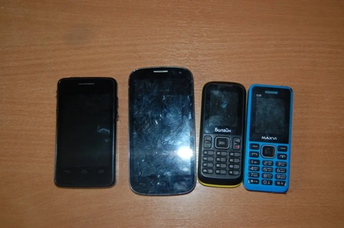 При осмотре прилегающих участков были обнаружены два свертка, в которых оказались четыре мобильных телефона.