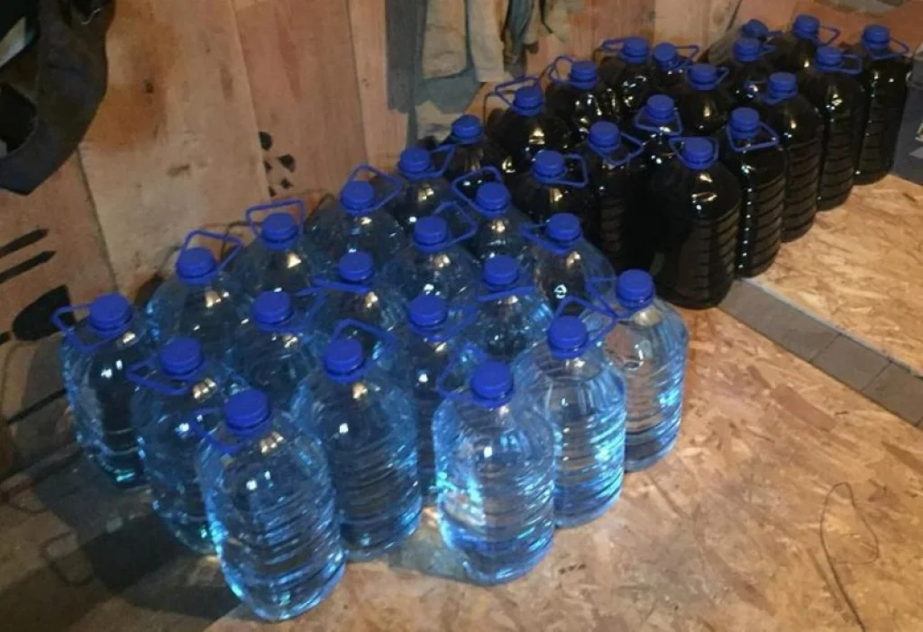 В одном из гаражей стражи порядка обнаружили 940 литров спиртосодержащей жидкости, разлитой по 5-литровым баклажкам, а так же 242 блока сигарет без акцизных марок.