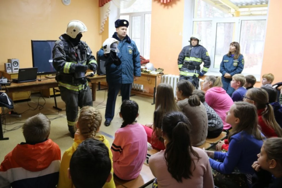 Кадеты и юнармейцы, которые отдыхают в дни осенних каникул в лагере «Белка», встретились с сотрудниками регионального МЧС.
