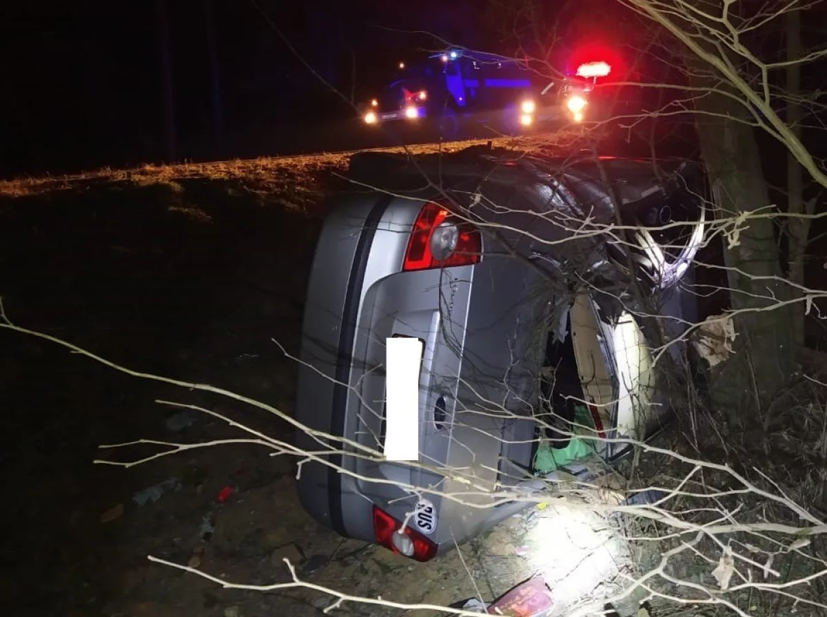Этой ночью в Боровском районе в кювет улетел автомобиль.