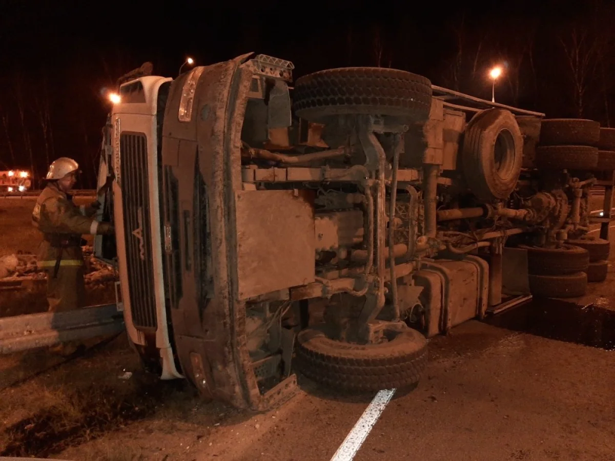 Рано утром 1 декабря на 121 километре автодороги М-3 «Украина произошло ДТП, в результате которого перевернулся «МАЗ».