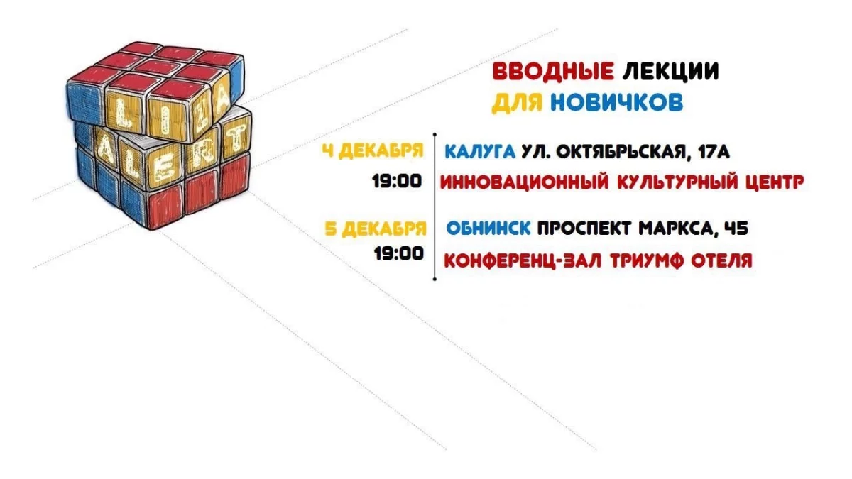 В Калуге встреча пройдет на площадке инновационного культурного центра 4 декабря в 19 часов, в Обнинске - 5 декабря в конференц-зале отеля «Триумф».