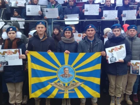 Ребята раздавали прохожим плакаты, на которых было изображение героя-космонавта, военнослужащего, спортсмена – и написано о подвиге, который он совершил.