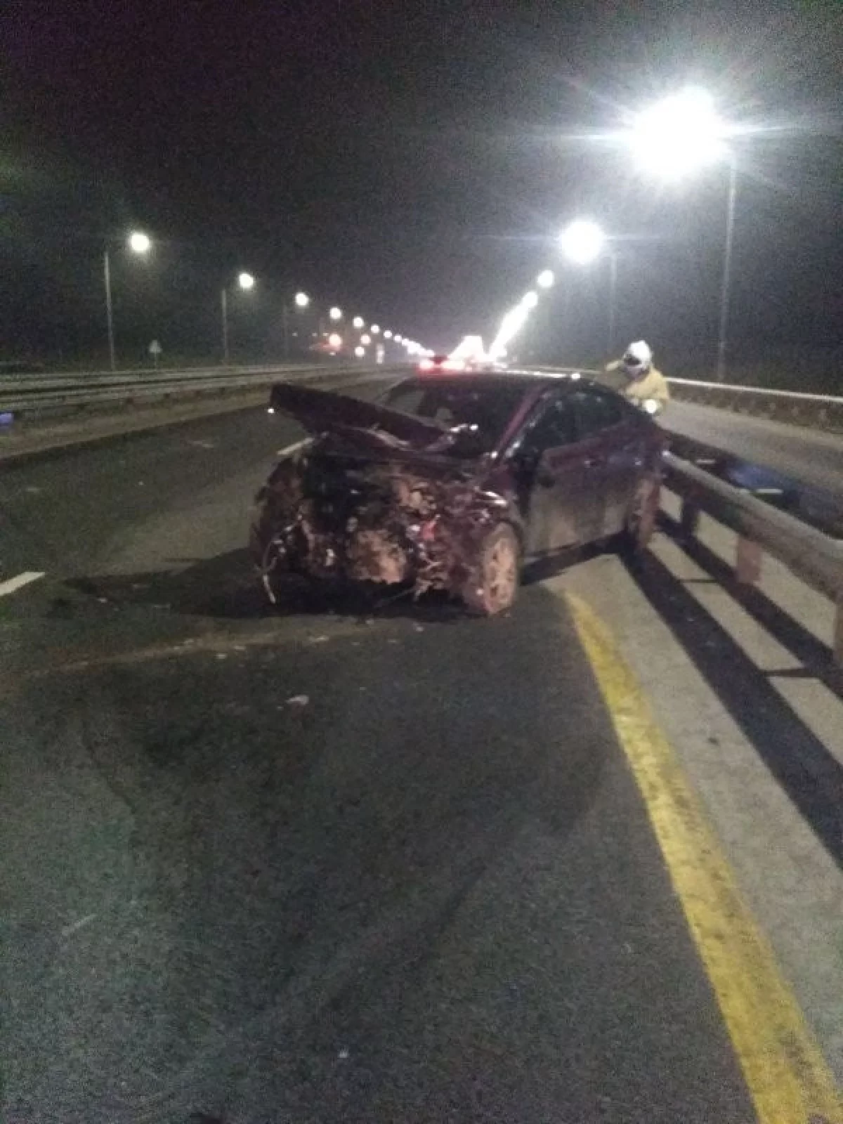 Автомобиль Hyundai врезался в отбойник на 180-м километре Киевской трассы.