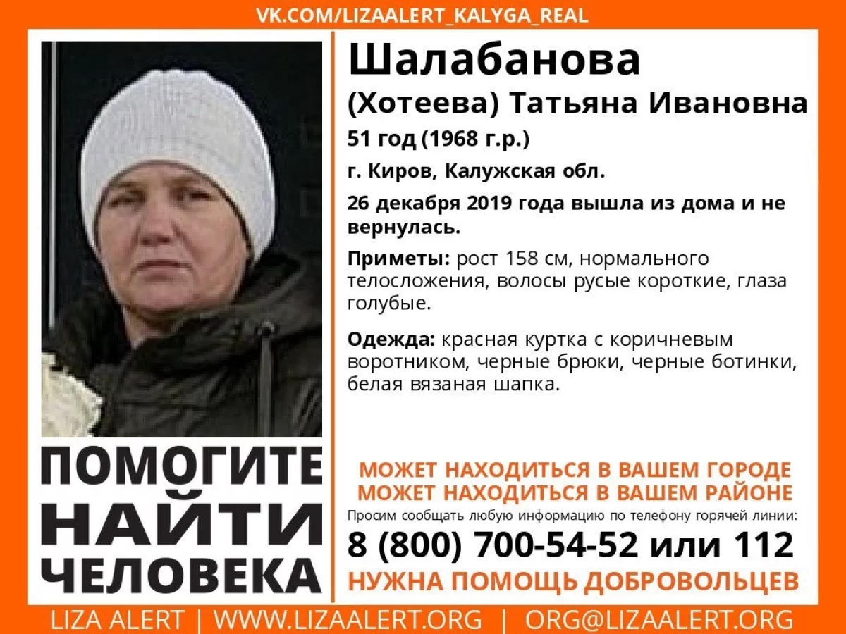 Поиски Татьяны Шалабановой объявили в поисковом добровольном отряде «Лиза Алерт».