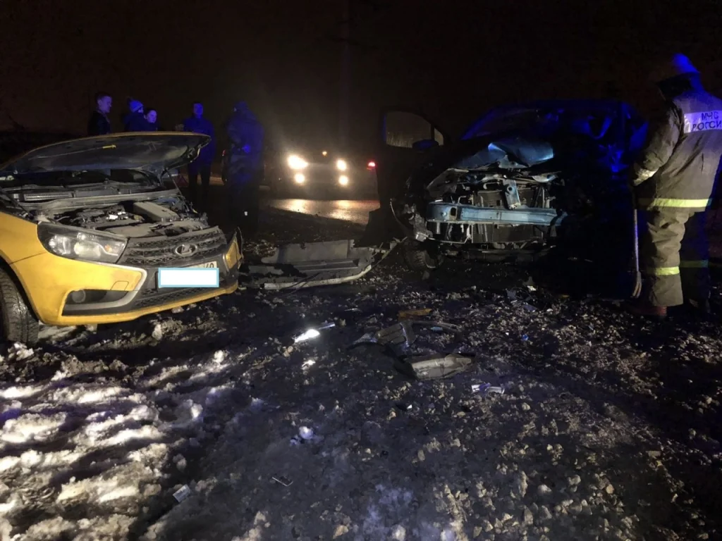 Накануне вечером возле деревни Яглово произошло серьезное ДТП: столкнулись «Лада Веста» и автомобиль «Рено».