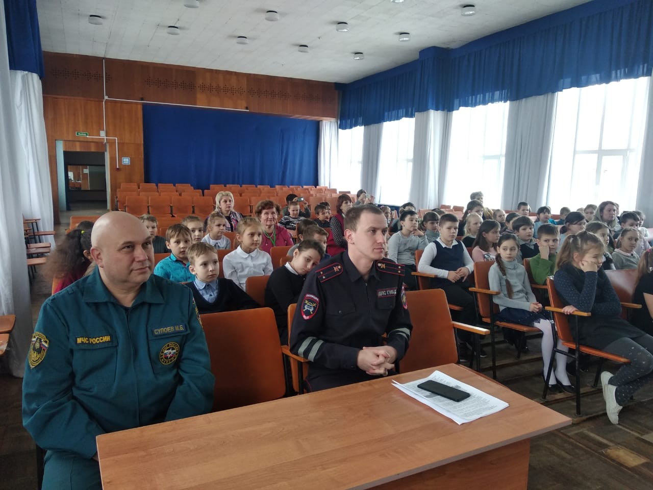 Автоинспекторы и сотрудники МЧС устроили для учеников товарковской средней школы совместные занятия по безопасности.